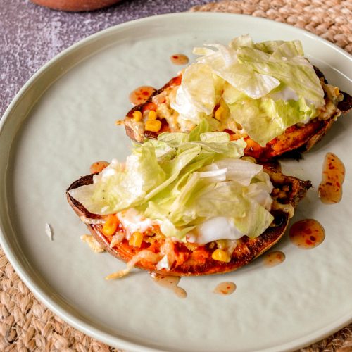 • На крај додади грчки јогурт, sweet chilli сос и салата. Јас ги јадам со лушпа, така ми се повкусни, но може и без.