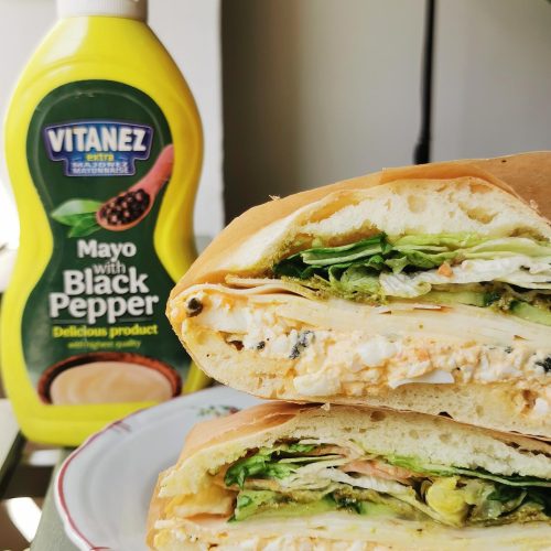 - Во длабок сад ставете ги јајцата и згмечете ги со вилушка. Ставете мајонез, сенф и зачини. Измешајте. На лепче ставете ја салатата од јајца, па наредете микс салата, кашкавал, сувомеснато и преклопете. Исечете на пола и voilà. Готов сже сендвичот.