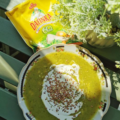 - Во тенџере ставете масло да се загрее. Ставете ги кромидот и лукот да се испржат малце. Потоа ставете ги парчињата брокула, спанаќ, зачинете со зачин Дафинка, ставете 1 литар вода и оставете да се свари брокулата, 30 минути. По желба, ставете ја целата смеса во блендер и изблендајте ја, или со алатка за пасирање, испасирајте. Пред крај, сервирајте со крем од растително потекло (соја, овес), ставете печени семки од тиква и малку малсиново. Voilà.