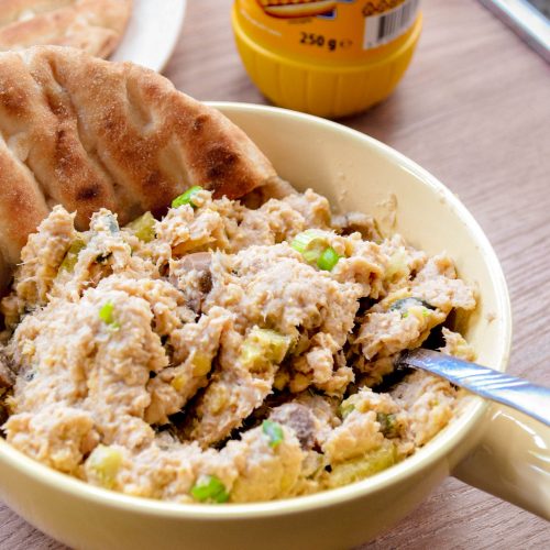 Додадете ја исцедената туна и останатите состојки и убаво промешајте.